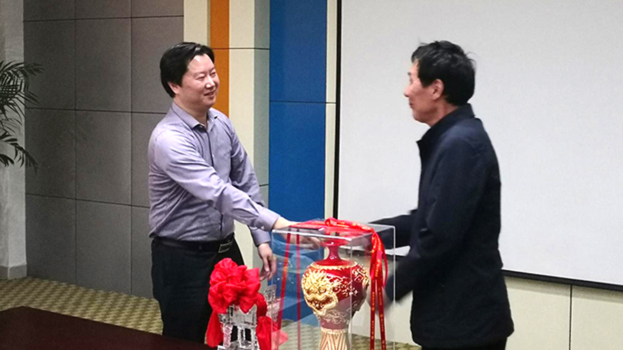 李永安董事長(zhǎng)與李衛(wèi)陽(yáng)副總裁互贈(zèng)禮品