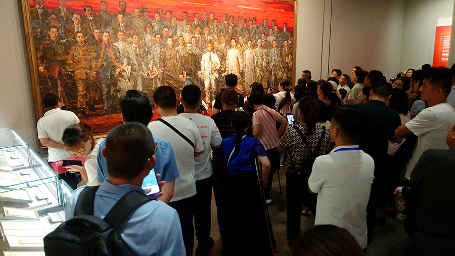在一大紀(jì)念館里,鮮紅的黨旗下,莊嚴(yán)的宣誓墻前,德源全體黨員面向黨旗,重溫入黨誓詞。