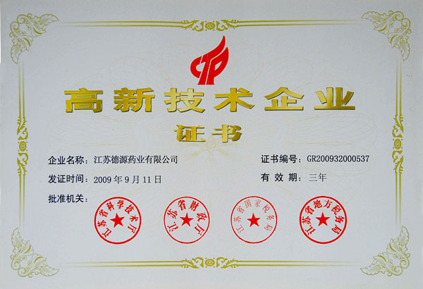 為扶持和促進高新技術(shù)企業(yè)的發(fā)展,進一步促進經(jīng)濟結(jié)構(gòu)優(yōu)化和產(chǎn)業(yè)技術(shù)升級,加快高新技術(shù)產(chǎn)業(yè)發(fā)展,近日,江蘇省高新技術(shù)企業(yè)認定管理工作協(xié)調(diào)小組依據(jù)科技部、財政部、國家稅務(wù)總局聯(lián)合制定的《高新技術(shù)企業(yè)認定管理辦法》及《高新技術(shù)企業(yè)認定管理工作指引》,在企業(yè)申請的基礎(chǔ)上,經(jīng)省高新技術(shù)企業(yè)認定協(xié)調(diào)小組組織專家咨詢、全國高新技術(shù)企業(yè)認定管理工作領(lǐng)導(dǎo)小組辦公室公示與備案,決定認定了一批企業(yè)為“江蘇省高新技術(shù)企業(yè)”,我公司名列其中(證書編號:GR200932000537)。