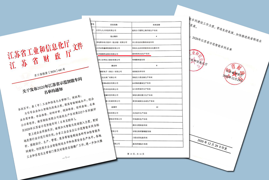 近日,江蘇省工信廳、江蘇省財政廳聯(lián)合發(fā)文,公布了2020年江蘇省示范智能車間名單,我公司固體制劑102生產(chǎn)車間位列其中。
