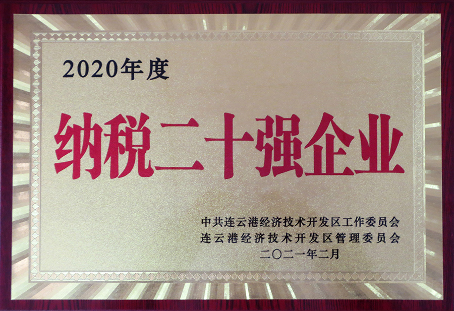 3月6日,在開發(fā)區(qū)召開的2020年總結(jié)表彰暨2021年工作部署大會上,公司榮獲連云港經(jīng)濟技術開發(fā)區(qū)“2020年度納稅二十強企業(yè)",這是公司自2010年首獲此稱號以來,連續(xù)第11年獲得該榮譽稱號。 表彰會上,公司李永安董事長榮獲了“功勛企業(yè)家”稱號,受到表彰。