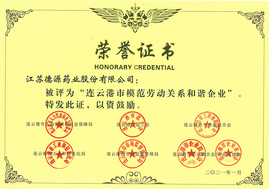長(zhǎng)期以來(lái),德源藥業(yè)認(rèn)真貫徹落實(shí)黨和政府關(guān)于構(gòu)建和諧勞動(dòng)關(guān)系的決策部署,以促進(jìn)企業(yè)發(fā)展、維護(hù)職工權(quán)益為原則,以勞動(dòng)關(guān)系長(zhǎng)期和諧穩(wěn)定為目標(biāo),深入開(kāi)展和諧勞動(dòng)關(guān)系創(chuàng)建活動(dòng),有力促進(jìn)了勞動(dòng)關(guān)系雙方互信合作,企業(yè)與職工實(shí)現(xiàn)了同發(fā)展、共成長(zhǎng),形成了規(guī)范有序、公正合理、互利共贏、和諧穩(wěn)定的勞動(dòng)關(guān)系新局面。公司自2013年獲得市模范勞動(dòng)關(guān)系和諧企業(yè),2014年獲得省模范勞動(dòng)關(guān)系和諧企業(yè)以來(lái),連年獲此殊榮。