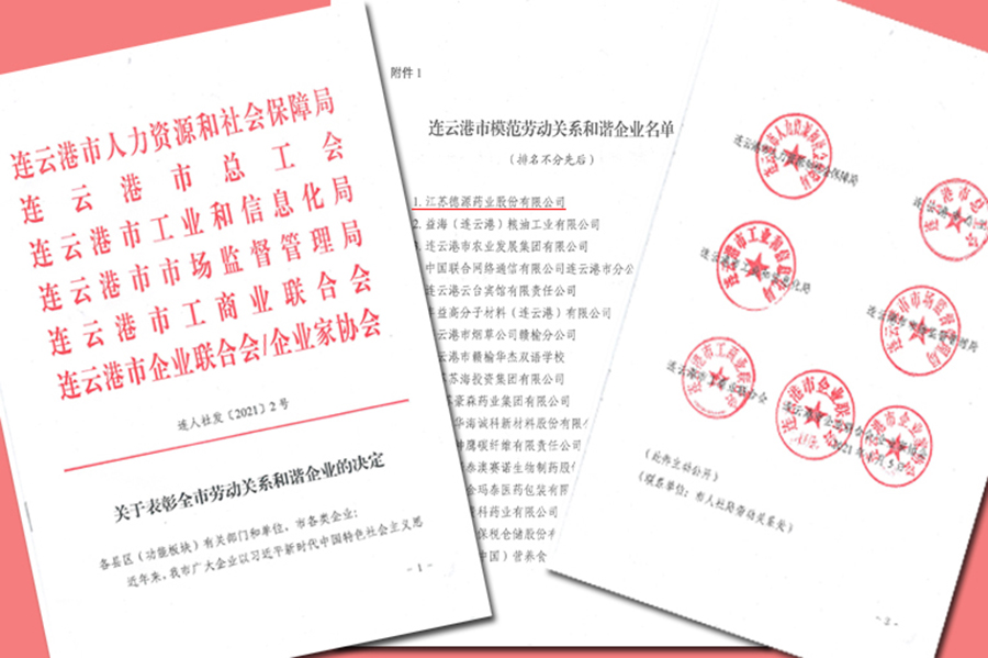 近日,市人力資源和社會(huì)保障局、市總工會(huì)、市工業(yè)和信息化局、市市場(chǎng)監(jiān)督管理局、市工商業(yè)聯(lián)合會(huì)、市企業(yè)聯(lián)合會(huì)、市企業(yè)家協(xié)會(huì)聯(lián)合發(fā)文,表彰了連云港市模范勞動(dòng)關(guān)系和諧企業(yè)等,我公司連年被授予“模范勞動(dòng)關(guān)系和諧企業(yè)”榮譽(yù)稱號(hào)。