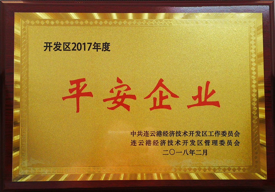 3月1日上午,連云港經(jīng)濟(jì)技術(shù)開(kāi)發(fā)區(qū)召開(kāi)2018年全區(qū)政法工作會(huì)議。會(huì)上,對(duì)開(kāi)發(fā)區(qū)2017年度政法工作先進(jìn)集體和先進(jìn)個(gè)人進(jìn)行了表彰,公司榮獲2017年度“平安企業(yè)”榮譽(yù)稱(chēng)號(hào)。